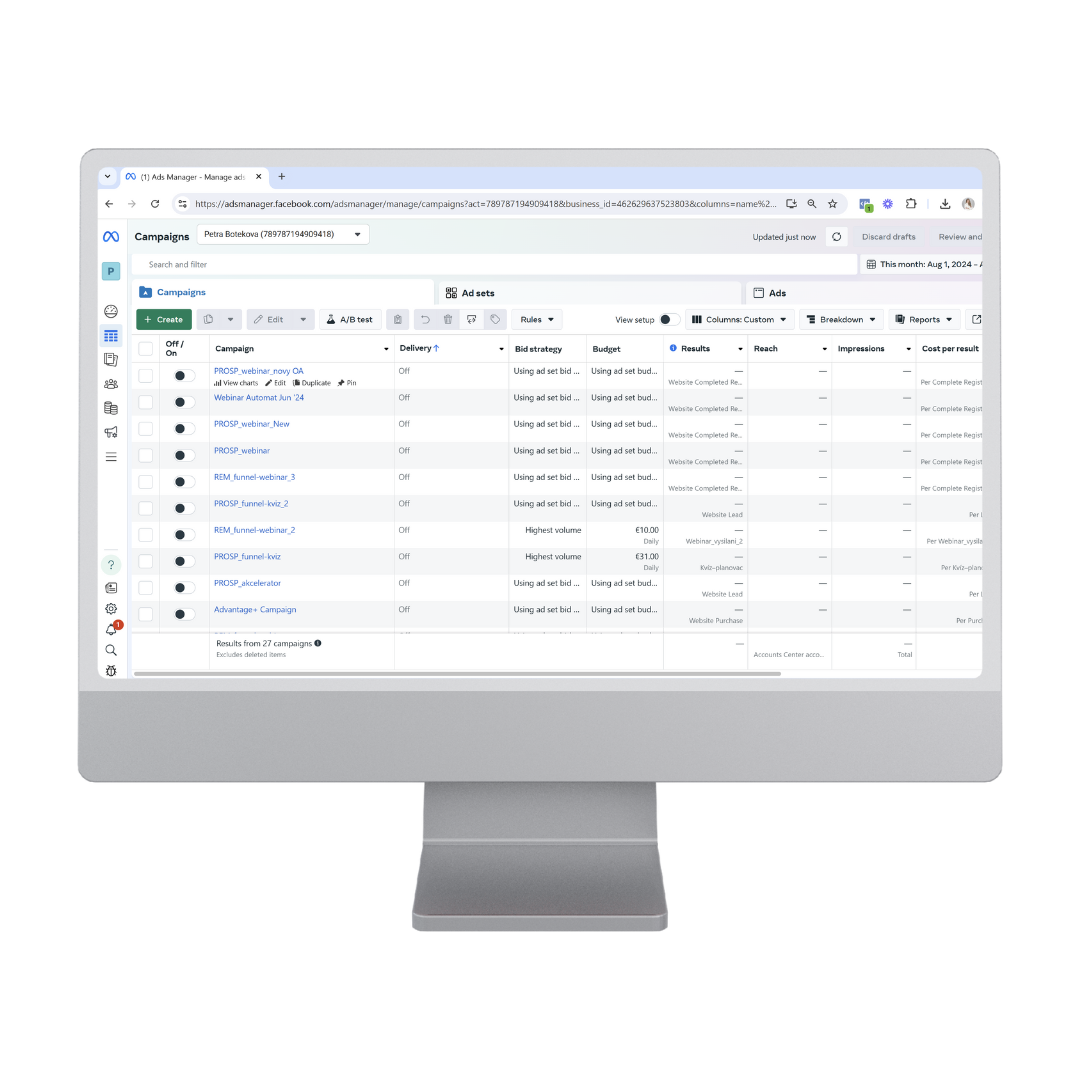 A postaráme sa o nastavenie, sledovanie a analýzu výsledkov reklamnej kampane po dobu 1 mesiaca od spustenia.